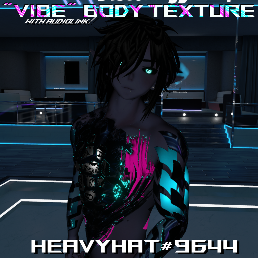 • There will also be a Unity Package included wich contains the material wich you easily can drag onto your avatars bodyparts for simple aplication if you want the same effect thats on the pics/video, it will require Poiyomi Shader though (created with Poiyomi Pro 7.3.046).