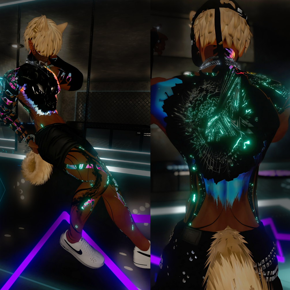 - There will also be a Unity Package included wich contains the material wich you easily can drag onto your avatars bodyparts for simple application, if you want the same effect thats on the pics/video, it will require Poiyomi Shader though (created with Poiyomi Pro 7.3.046).